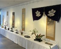 On a beautiful sunny fall weekend with the leaves turning yellow; the Ikenobo Colorado Chapter celebrated the Japanese yojijukugo (idiom) Sessa Takuma where one interpretation is to “improve by polishing (interacting with) each other to bring out your natural beauty and encourage each other”. From October 3 to 5, 2025 the entire Colorado Community was invited to partake in over 62 beautiful Ikenobo arrangements to learn and grow through the sharing of inspirational ideas and peaceful interactions. The splendid floral creations which included many Rikka, Shimputai, Shoka, Tatehana, Jiyuka and Sunanomono were displayed with Edo period scrolls (kakejiku) to highlight the season. Over 3,700 people came to the Exhibition and we were honored that the Governor of the State of Colorado attended to admire the arrangements. An audience of 191 people participated in a special demonstration of Ikenobo arrangement styles throughout history.
