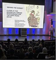 With the great help of the Ikenobo International Division, the Colorado Chapter sponsored the movie screening of the Hana Ikusa Movie (Flower and Sword, 花戦さ) with English Subtitles on October 3 and October 5, 2025. The Boulder Library District requested that the Colorado Chapter President (who was in Kyoto in 2016 during the making of the “sand thing”) give a pre-screening lecture on the creation of the Grand Sunanomono at the Maeda (前田氏) Villa for the movie by Ikenobo. The total audience attendance of over 466 people were fascinated by the entire process of making one of the largest Sunanomono in history. In addition, audiences were overcome by the story of the Hana Ikusa movie and learned a great deal about the genius of Senko Ikenobo. It was the great pleasure of the Ikenobo Colorado Chapter to bring this profound Japanese cultural event to the people of Colorado.